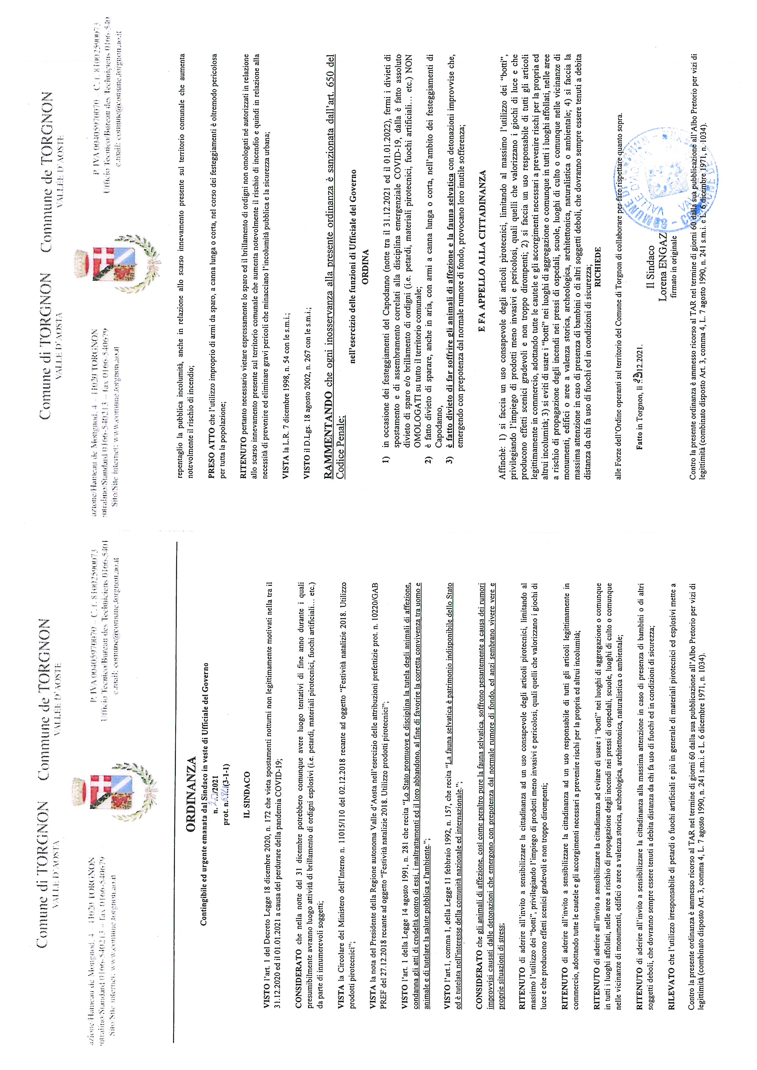 | Oggetto | Divieto di utilizzo di fuochi d' artificio, materiale pirico ed altro su tutto il territorio comunale |